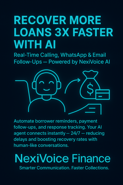 🤖 Automate borrower reminders, 💬 WhatsApp messages, 📞 call follow-ups, and 📧 email tracking — all powered by AI. ⏰ Connect instantly 24/7, reduce delays, and 💸 boost recovery rates with smart, human-like conversations.